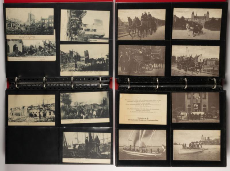 2 Albums with appr 150 postcards on fire fighters/ firemen mainly from Rotterdam. Both modern and lots of old ones. (Image)