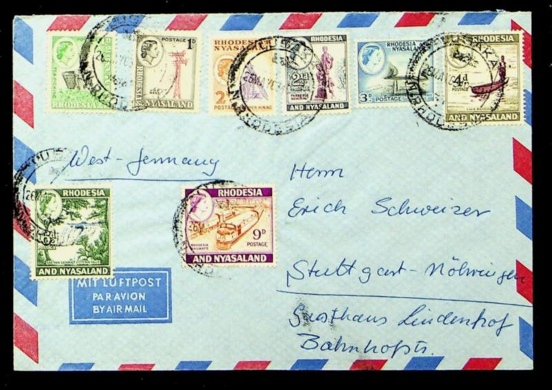 Rhodesia & Nyasaland 1963 8v airmail cover from Blantyre to Stuttgart Germany (Image)