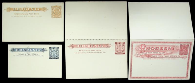 Rhodesia set of 4 unused Coat of Arms 1d & 1½d postcards 2 with reply (Image)