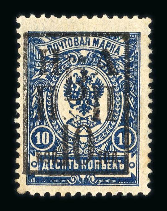 Nikolajewsk 1921 10k on 10k blue with framed overprint, hinged mint without the usual toning, a fine example of a rare stamp. V. Liapine Cert (2017) (Image)