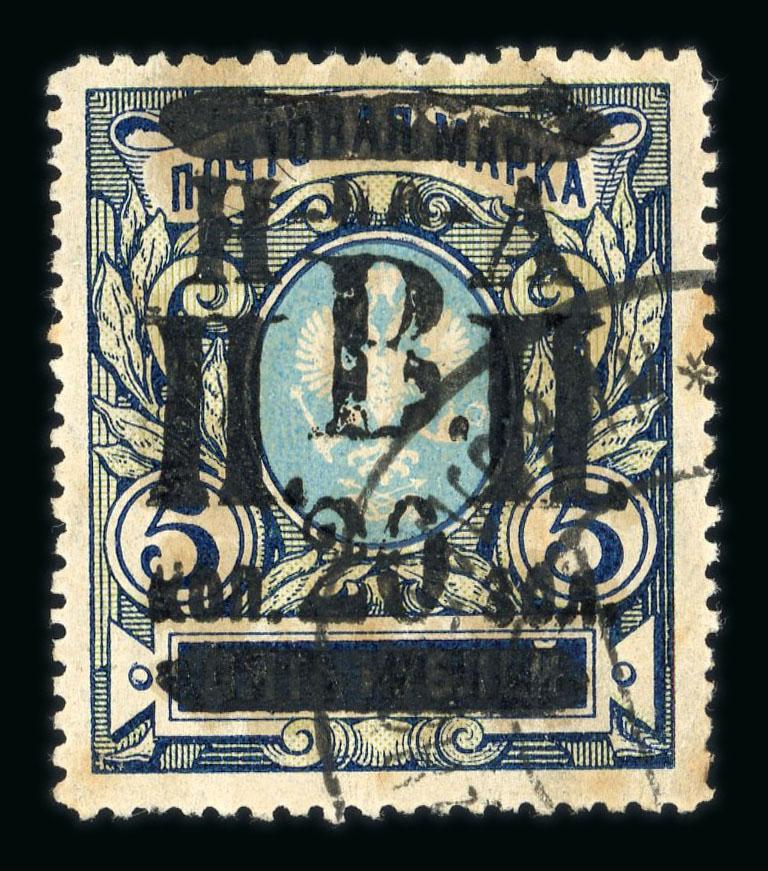 Nikolajewsk 1921 10K on perf 5k framed surcharge mint never hinged, some gum toning, V. Laipine handstamp (Image)