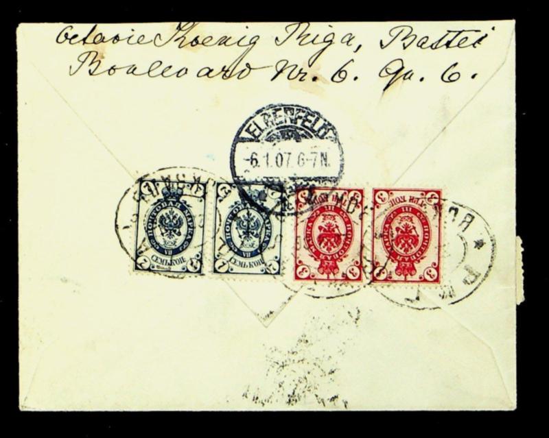 Russia 1907 4v regd cover from Riga to Elberfeld Germany (Image)