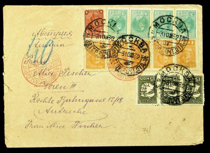 Russia CCCP 1932 13v on airmail cover from Moscow via Berlin Germany to Wien Austria (Image)