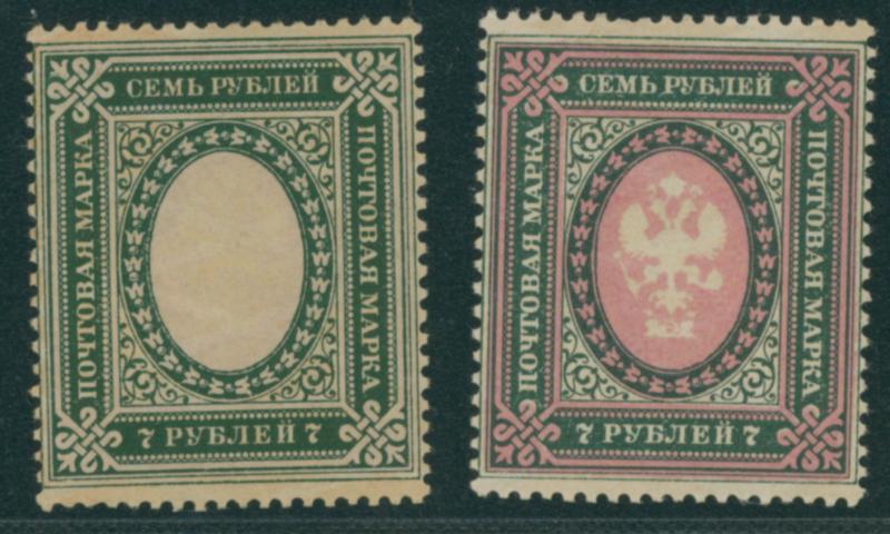 Russia 1917 7r dark green & pink missing pink at the left unused stained, hinged, (Image1)
