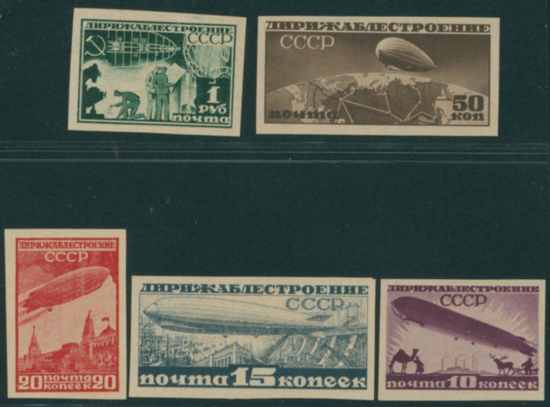 Russia 1931-32 10k - 1r air stamps imperf. , 5 stamps unused hinged, catalog value:32,000YEN (Image1)