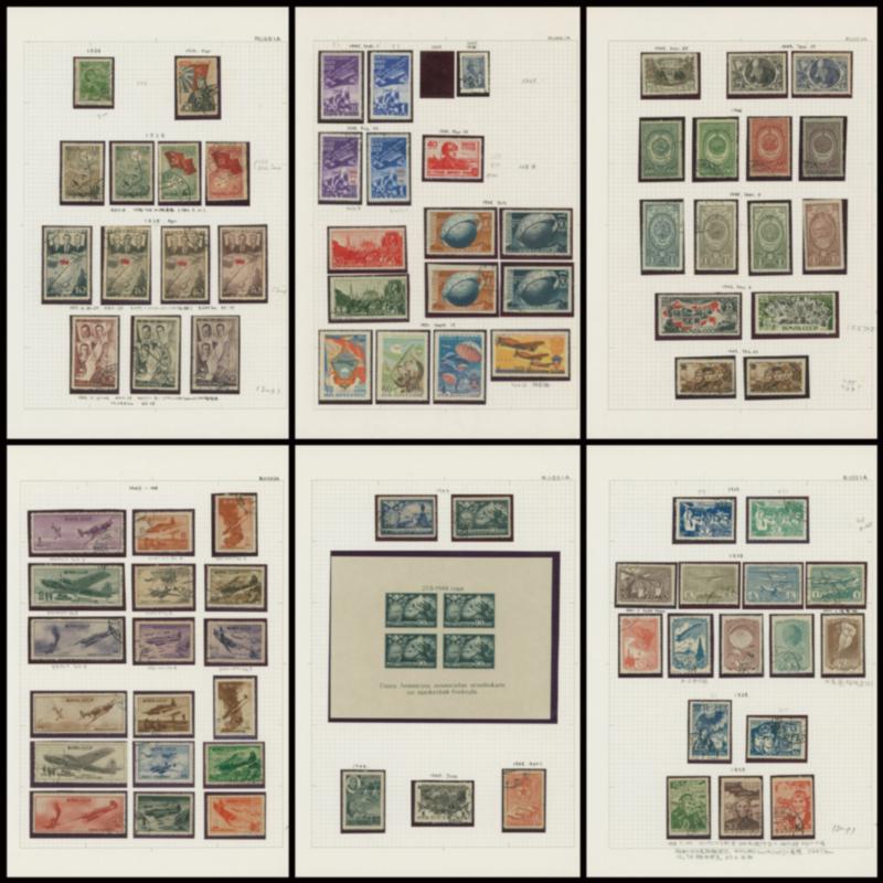Russia 1928-1951 7 leaves, 84 stamps mixed condition of unused and used, mainly used with some unused,YouTube(Image1)
