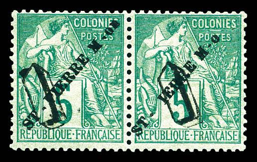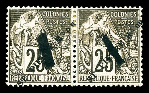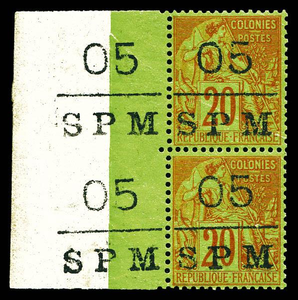 N°8b, 05 sur 20c, paire tenant à bord de feuille surchargé. SUP (certificat) Qualité: ** Cote: 640 euros (Image)