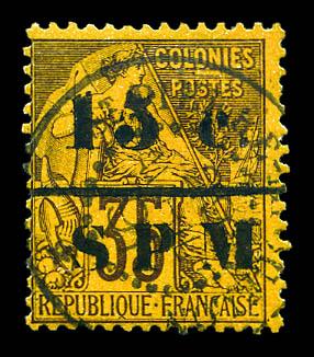 N°13, 15c sur 35c de 1881, tirage 800 exemplaires. SUP (signé /certificat) Qualité: Oblitéré Cote: 750 euros (Image)