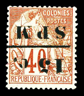 N°14a, 15c sur 40c: surcharge renversée. TTB (signé Brun/certificat) Qualité: * Cote: 400 euros (Image)