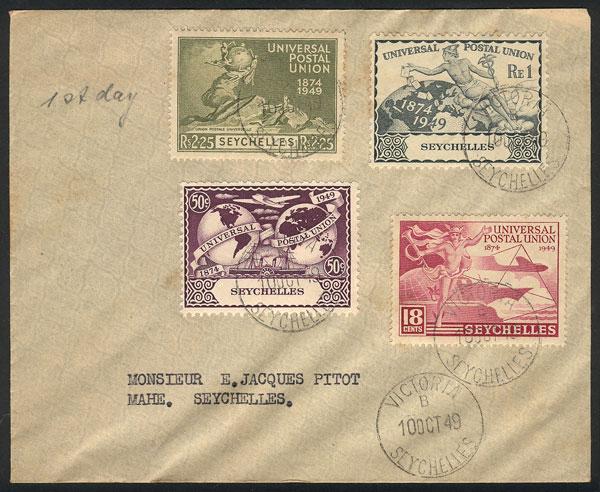 Cover franked with the 4 values of the UPU anniversary issue, postmarked 10/OC/1949 (FDI), VF! (Image)