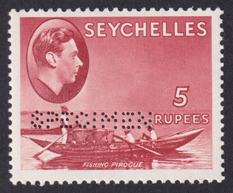 1938-49 KGVI Pictorials 2c to 5r complete set punctured 'SPECIMEN' with tiny holes, minor hinge remainders, Cat £900, for unmounted. Unusually fine for this very scarce set. (24)