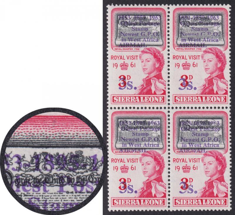 1963 Postal Commemoration '3s.' on 3d SG 282 block of four, the lower-left unit with '1895' for '1859' SG 282a, unmounted, Cat £550+. Superb. (Image1)
