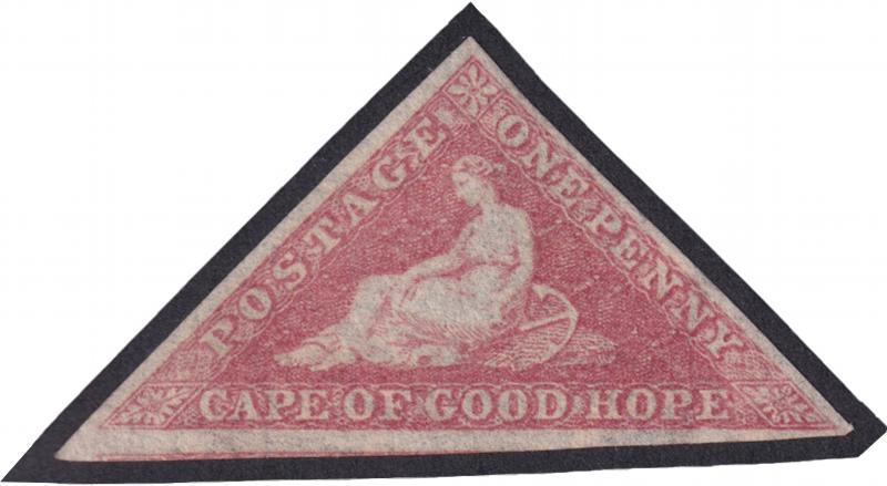 CAPE OF GOOD HOPE: 1855-63 1d imperf plate proof in dull rose on ungummed paper with the watermark sideways, margins close to large with a fragment of the adjoining unit at lower-left, Cat £425, in a footnote below SG 8. (Image1)