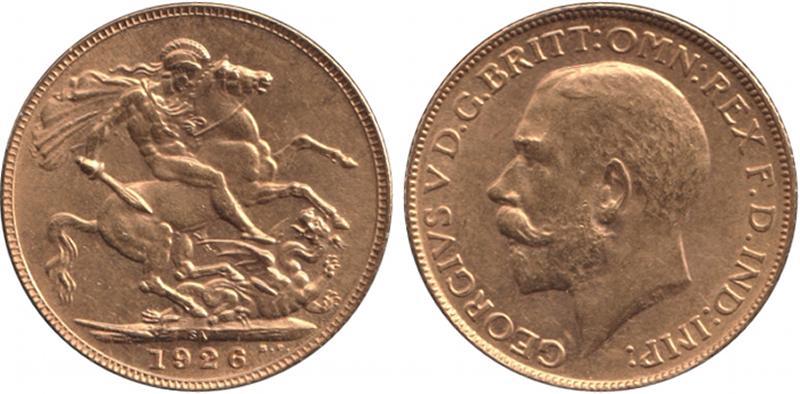 SOVEREIGN: 1926SA KGV St George reverse Pretoria Mint, Marsh 290, Spink 4004, very light bag marks, Uncirculated. (Image1)