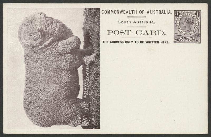 POSTAL STATIONERY - CARDS: 1909 Scenic Issue 1d HG 8 (Adelaide Printing with Stop after 'AUSTRALIA.') 'HILL RIVER/PRIZE MERINO RAM' in black-brown, very fine unused. A scarcer view: an example with a couple of bumped corners sold at our auction of 31.8.2019 for $708 (Sale 237 Lot 375). (Image1)