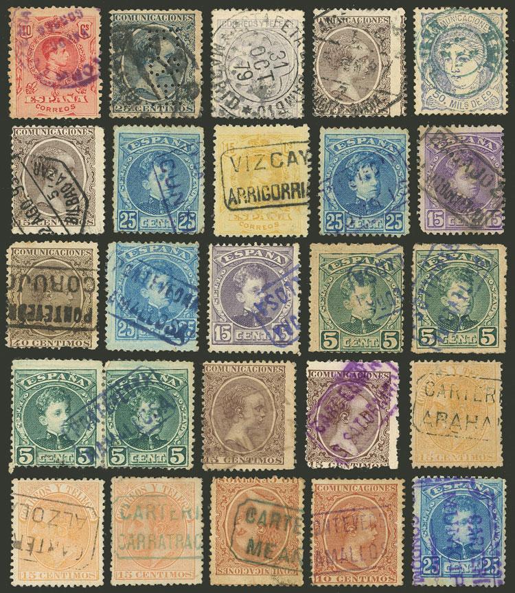 Lot of old stamps with interesting cancellations, most are carterias, one estafeta, also a nice old PERFIN, very fine general quality! (Image)