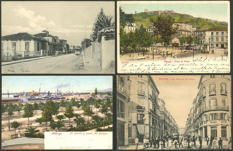 MÁLAGA: 8 Old postcards with very good views, fine to VF general quality. ATTENTION: please view all the photos of this lot, because all the cards have been scanned (both sides). (Image)