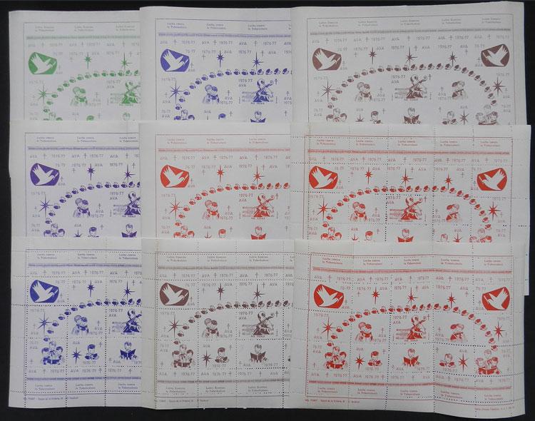 FIGHT AGAINST TUBERCULOSIS: 14 modern sheets, 5 imperforate, all different. The imperforate sheets are folded in the middle and the rest have minor defects in the sheet margin (not affecting the labels), excellent appearance, interesting group! (Image)