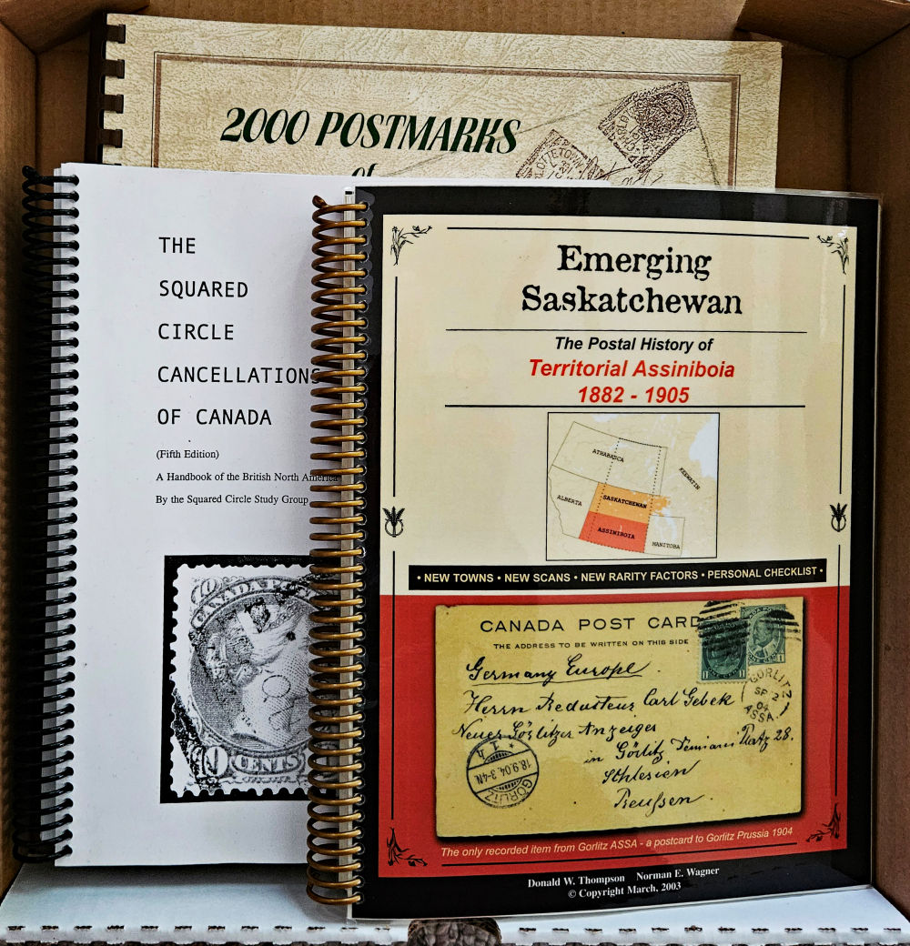 3 CANADA POSTMARK REFERENCE BOOKS, includes "Squared Circle Cancellations" by the BNAPS study group (2001), "Territorial Assiniboia" by Thompson-Wagner (2003), and "PEI Cancels" by Murray (1995), retails over $150 US ($200 CDN), VF est ($35+ US) (Image)