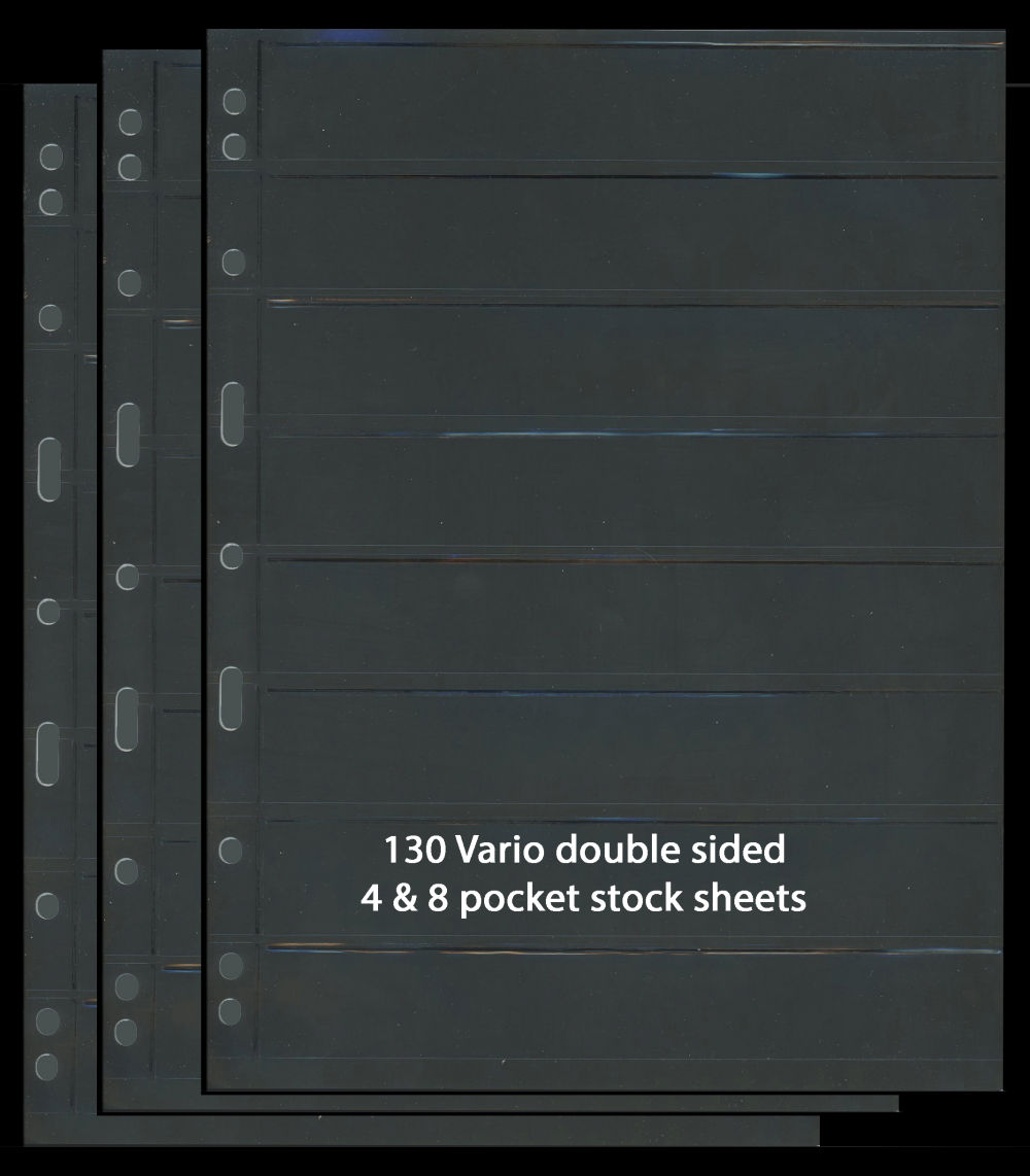 VARIO STAMP STOCK SHEETS, 130 double sided sheets with between 4 and 8 pockets per side, retails over $200 US ($300 CDN), VF est ($20+ US) (Image)