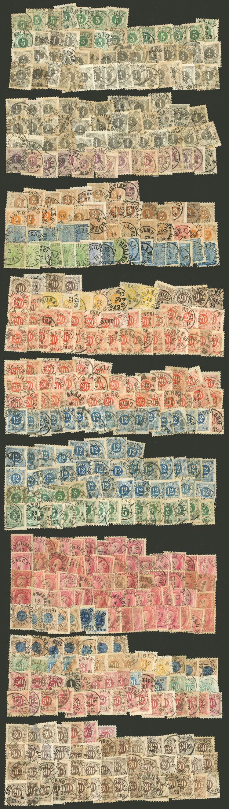 Over 450 very old stamps, used and in general of fine to very fine quality, WITH VARIED AND INTERESTING CANCELS, small towns can be seen, traveling PO, etc., lot with large potential, good opportunity! (Image)