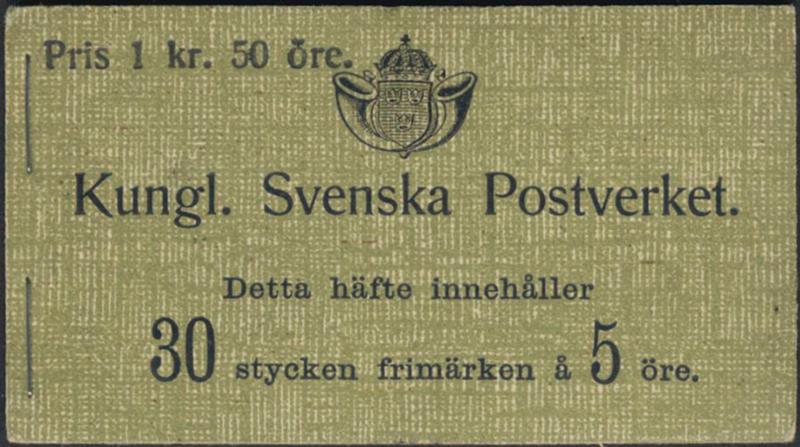 Sweden, Booklet Facit H3 **, 1913 Oscar II 30 × 5 öre “Pris 1 krona 50 öre” on cover. Fresh example. F 5000 (Image1)