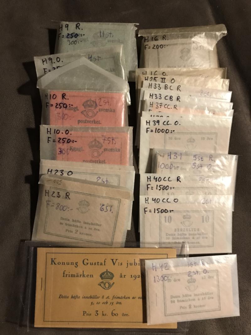 Sweden, Booklets. Collection with 39 handmade booklets 1913–1946 incl. H3, two H20, H21, 23–32, 36–40R+O, two Bellman R+O and H47, etc. F ca. 55000. Please see a selection of scans at www.philea.se. (Image1)
