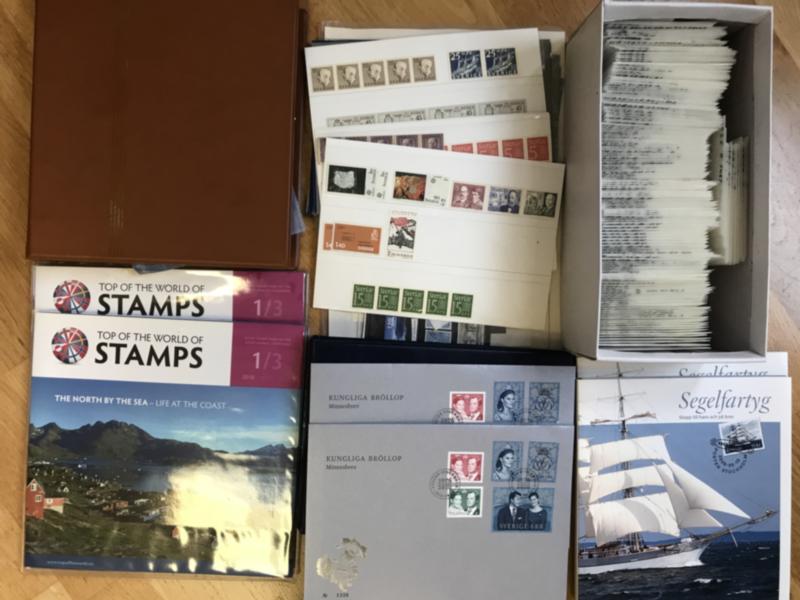 Sweden, Booklets accumulation ca. 1965–2016 in four albums in box. Booklets and blocks. Face value ca. 8300 and ca. 120 economy/Christmas stamps, plus also ca. 590 'Sverige BREV' and nine discount stamp booklets. 3 more images are available at www.philea.se (Image1)