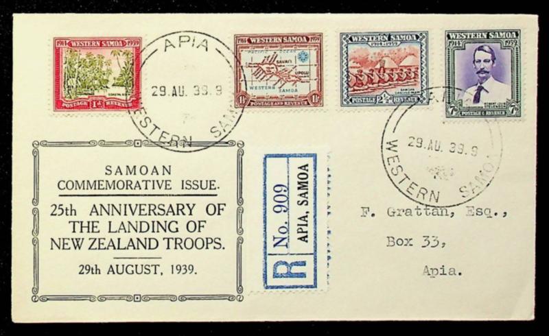 Western Samoa 1939 4v 25th Anniversary Landing of New Zealand Troops Regd cover sent within Apia (Image)