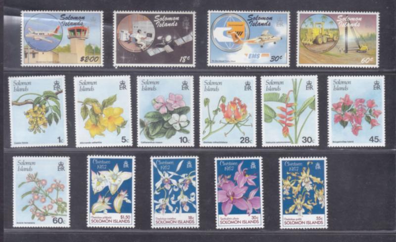 Solomon Islands 1987 Christmas Flowers Space Satellite set of 15 fine MNH stamps (Image)