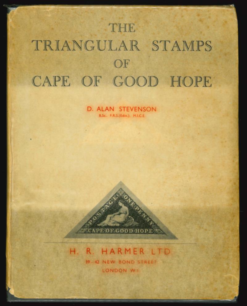 The Triangular Stamps of Cape Of Good Hope by D Alan Stevenson (1950) including the very rare original dustjacket and supplement, colour and black and white plates, some paper toning, still one of the authoritative works on the subject. (Image)