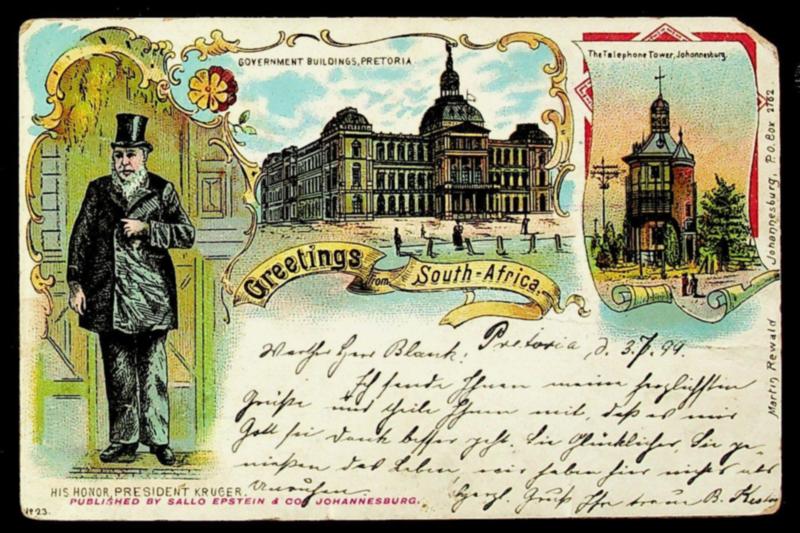 South Africa 1899 Johannesburg, Transvaal PPC w/ Coat of Arms 2v from Pretoria to Munich Germany (Image)