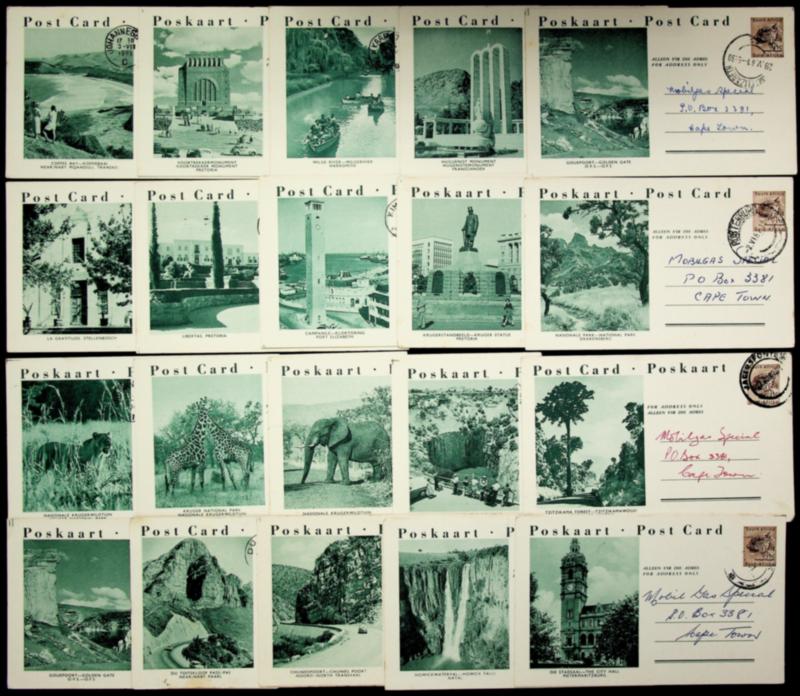 South Africa set of 20 diverse views illustrated 1½d postcards all sent to Cape Town (Image)