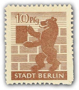 1945, 10 Pfg. Berliner Bär schwarzbraun auf hellchromgelb getöntem Papier mit waagerecht geriffelter Gummierung, gestempelt, einwandfrei und unsigniert, Fotoattest Dr. Jasch BPP 03/2025 (ME 2.000,-) (Image)