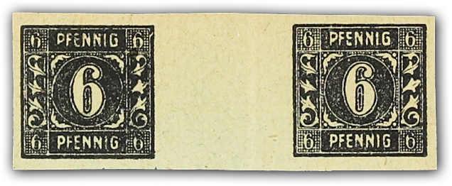 1945, 8 Pfg. Ziffer ungezähnt im Zwischenstegpaar, postfrisch, vollrandig geschnitten, leicht bügig und im Steg leicht vorgefaltet, etwas verfärbt, sonst einwandfrei, Zwischenstegpaare sind selten, Fotoattest Kramp BPP (ME 1.400,-) (Image)