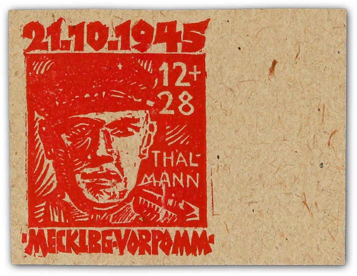 1945, 12 Pfg. Opfer des Faschismus, ungezähnter Probedruck auf grauem, ungummiertem Kartonpapier vom rechten Bogenrand, allseits breitrandig, unsigniert, seltene Marke in einwandfreier Qualität, Alt-Attest Sturm (ME 900,-) (Image)