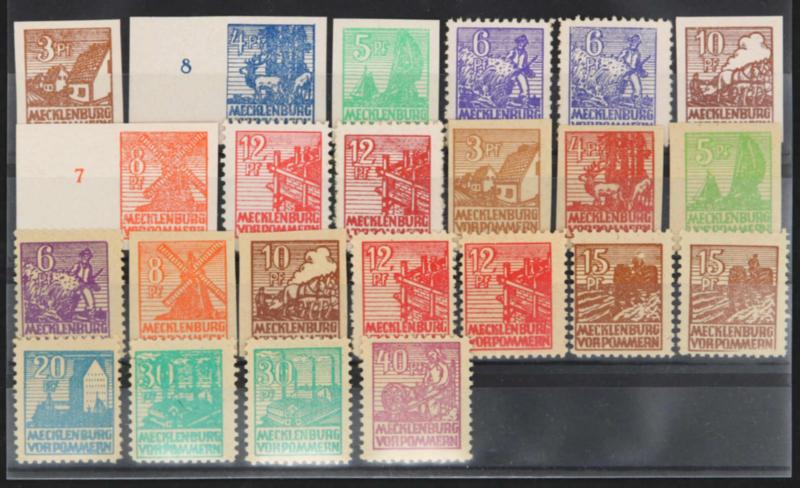 1946, 3-40 Pfg. Abschiedsserie, Zusammenstellung aller x- und y-Werte (je billigste Farbe), zusätzlich 12 und 30 Pfg. als z-Variante sowie Mi-N. 33 xb und die 37 y mit Plattenfehler I bzw. III, gesamt 23 Werte, postfrisch, einwandfrei (ME 614,-) (Image)