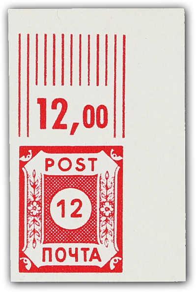 1945, 12 Pfg. Potschta rot, Ölfarbe, postfrisches Exemplar aus der oberen rechten Bogenecke, ungefaltet und unsigniert in einwandfreier Qualität, Fotoattest Ströh BPP (Image)