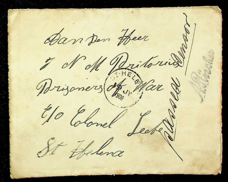 St. Helena Unfranked cover from either South Africa or local mail to POW St Helena (Image)