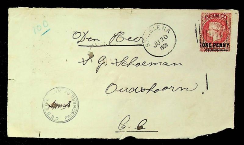 St Helena 1900 1p ovpt on 6p QV sign censored POW cover to Oudtshoorn Cape Colony South Africa (Image)