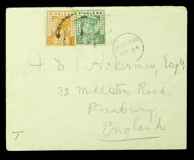 St Helena 1897 2½px2v on cover w/Plymouth ship letter cachet to England GB (Image)
