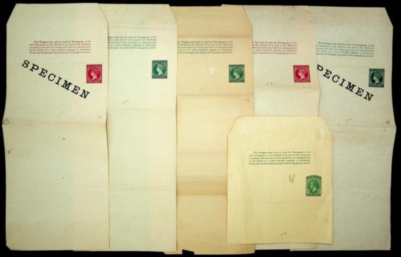 St. Lucia set of 6 unused wrappers, 2 w/ ‘SPECIMEN’ ovpt (Image)
