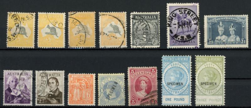 Australia 1913-1995 in 3 stockbooks. Collection used with better Roo's and KG-V heads as well as better commemoratives. Also a nice section Australian States. (Image)