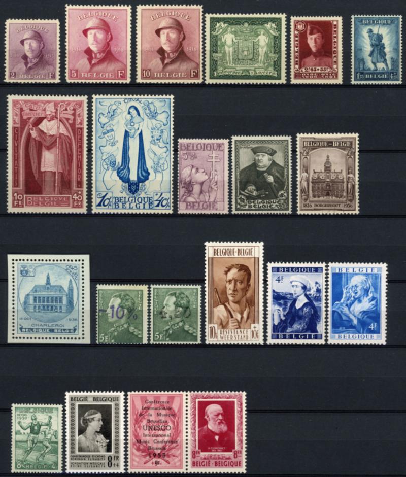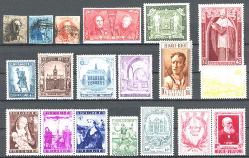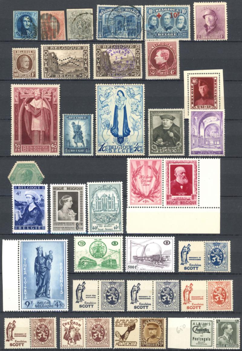 Belgium 1849-2001 in 6 albums. Collection mint/used/MNH and after 1962 most MNH with better stamps and blocks (incl. Exhibition 1924*) Blocs 1-5*, 21/22** (v.d Weyden), and complete from 1950 onwards with some better sets used. Also 3 albums B.O.B. with R