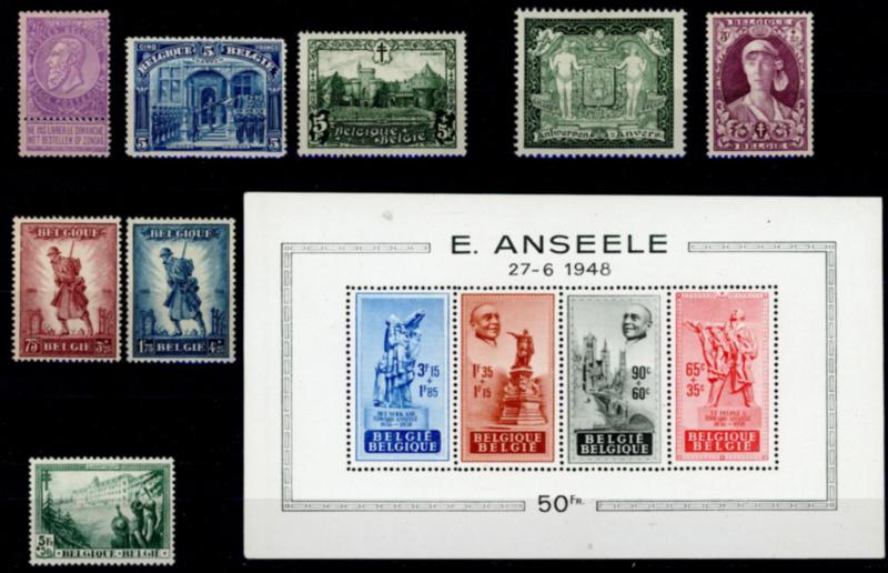 Moving Box Belgium 1863-2001 **/*/0 in 4 Leuchtturm albums 2 stock books including Mint 347/353, 342/343, 315/321, 291/297, 127 and block 4 (MNH minimal spot on gum). See photo. (Image)