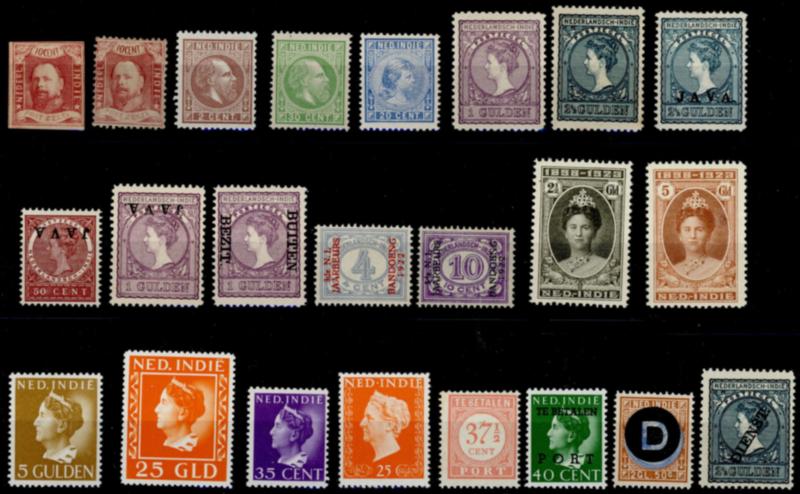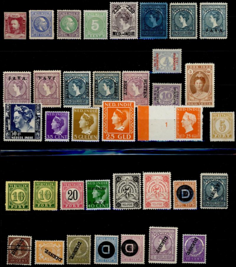 Nederlands Indië 1873-1948 gebr./ongebruikt in Holland album. Mooie startverzameling met diverse betere nummers reeds aanwezig alsmede restantverzameling Indonesia ongebruikt/postfris.