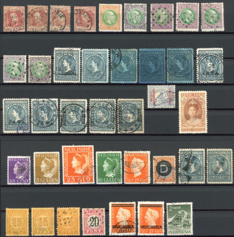 Nederlands Indië 1864-1949 in Davo album. Sterk gespecialiseerde collectie gebruikt en verzameld op Type, Tanding, en Stempel met uitgebreid Vierkant-/Punt-/en (Half)Rond-stempels wb. Veel zegels in diverse aantallen aanwezig wb. Tanding variëteiten t/m 1 (Image)