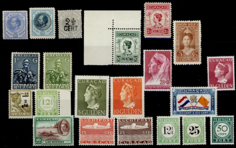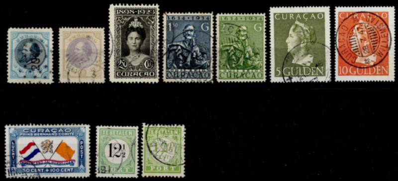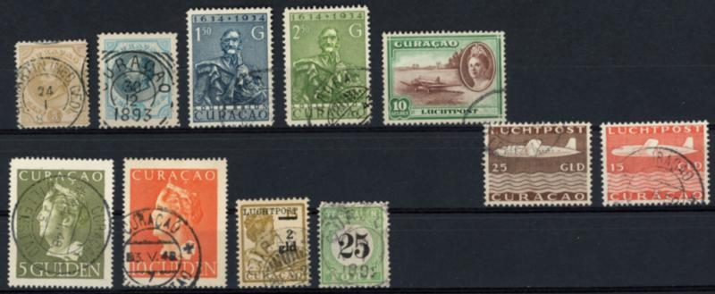 Curaçao 1873-1948 meest gebruikt in stockboek waarbij Nr 2-11-104/120-178-181, LP3 en uitgebreid port op type en tanding bv P7typ3 (fraai/zeer fraai) en p31/p33 voor indruk zie de foto. (Image)
