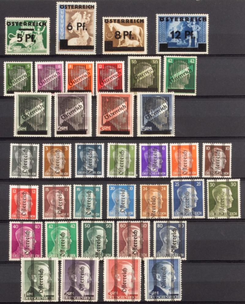 Austria 1945. Provisional overprints on German stamps 3 sets in mint condition. Michel nrs. 664-695 and Va/Vd-B. (Image)