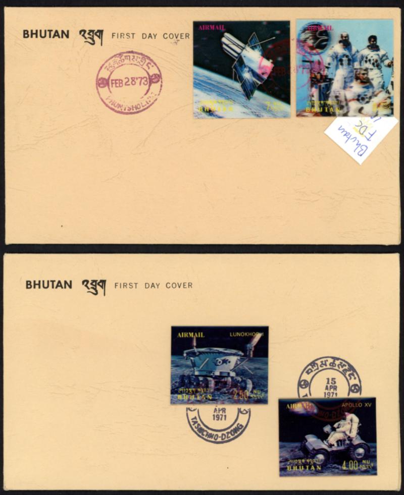 Bhutan 4 space FDC's 1971-1973 and 1 art FDC 1970. (Image)